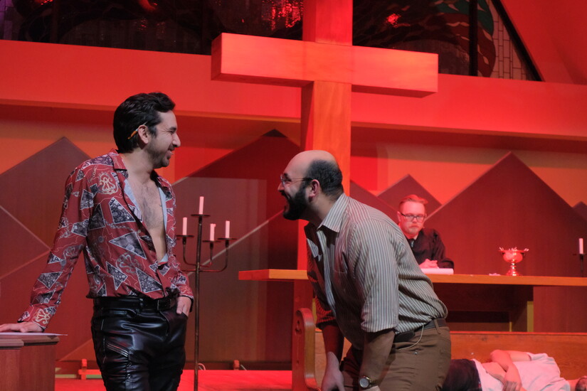 A mix of historical, biblical, and fictional characters—including Satan, Mother Teresa, Sigmund Freud, and Jesus—testify for and against Judas.