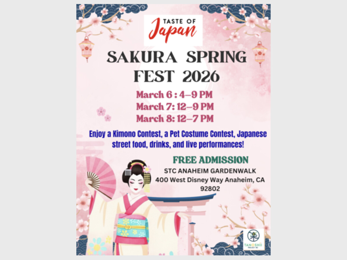 Taste of Japan welcomes the spring season with Sakura Spring Fest 2026, returning to Anaheim GardenWalk Friday March 6 through Sunday March 8, 2026. Across these three days, Taste of Japan invites guests to experience the beauty of cherry blossom flowering season through lively activities celebrating Japanese culture, flavors, and traditions all in one unforgettable event.