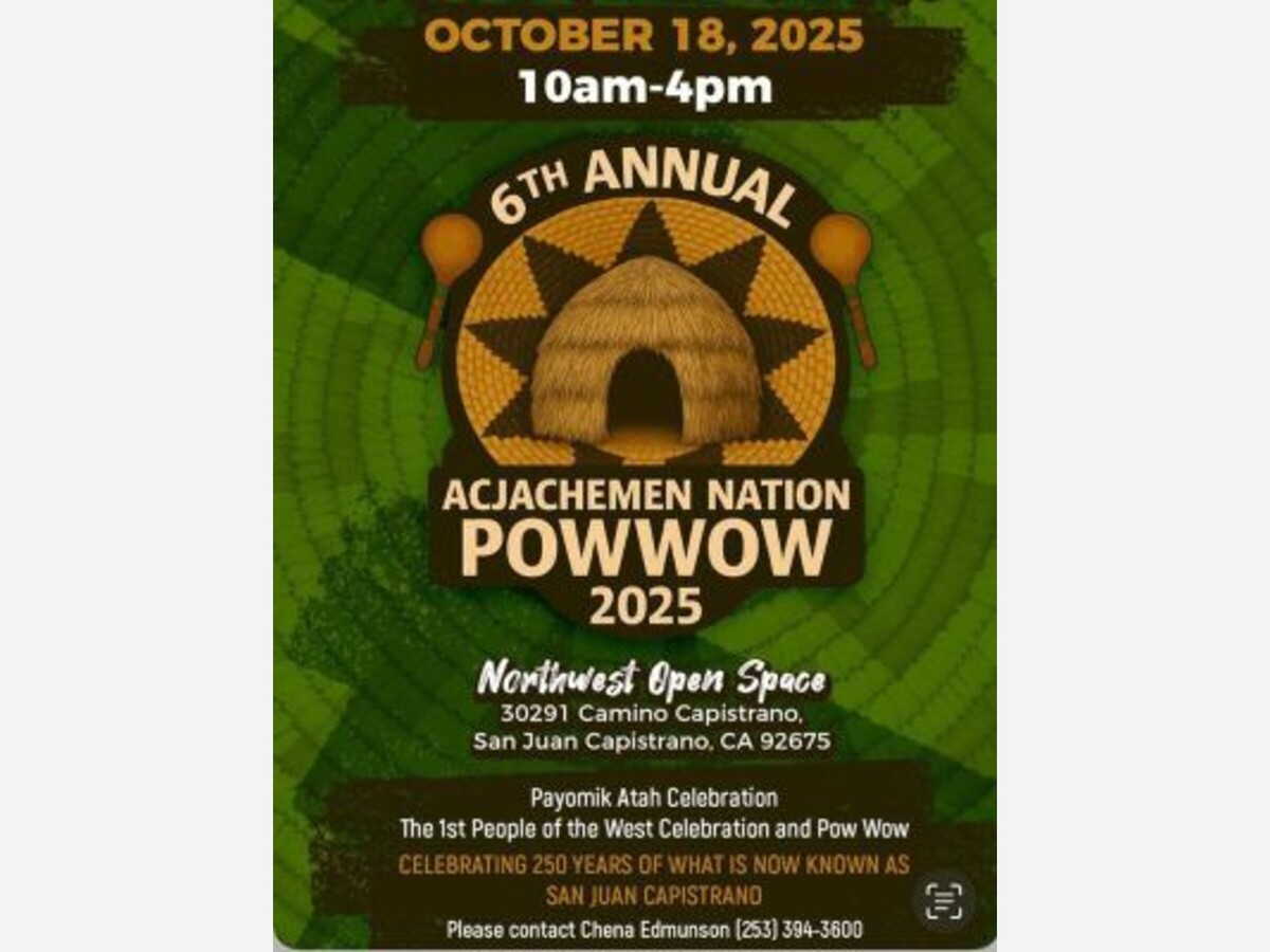 Come feel the heartbeat of Acjachemen land – where nations gather in song, dance, and community. Experience intertribal dancing, bird songs, Native foods, art, and information booths. A living celebration of heritage resilience, and culture carried forward.